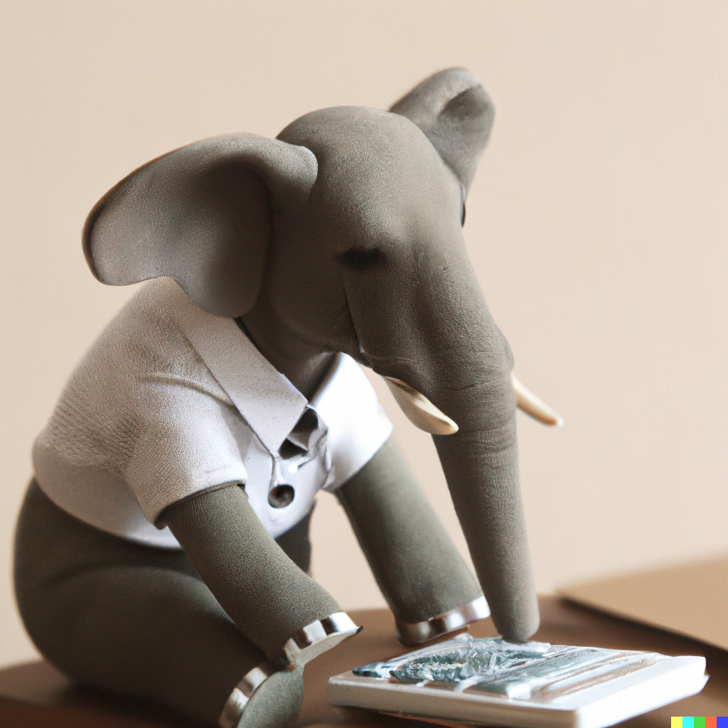 This is one of my favourites, “Elephant doing accounting”. DALL-E was clever enough to create these in highly whimsical styles: